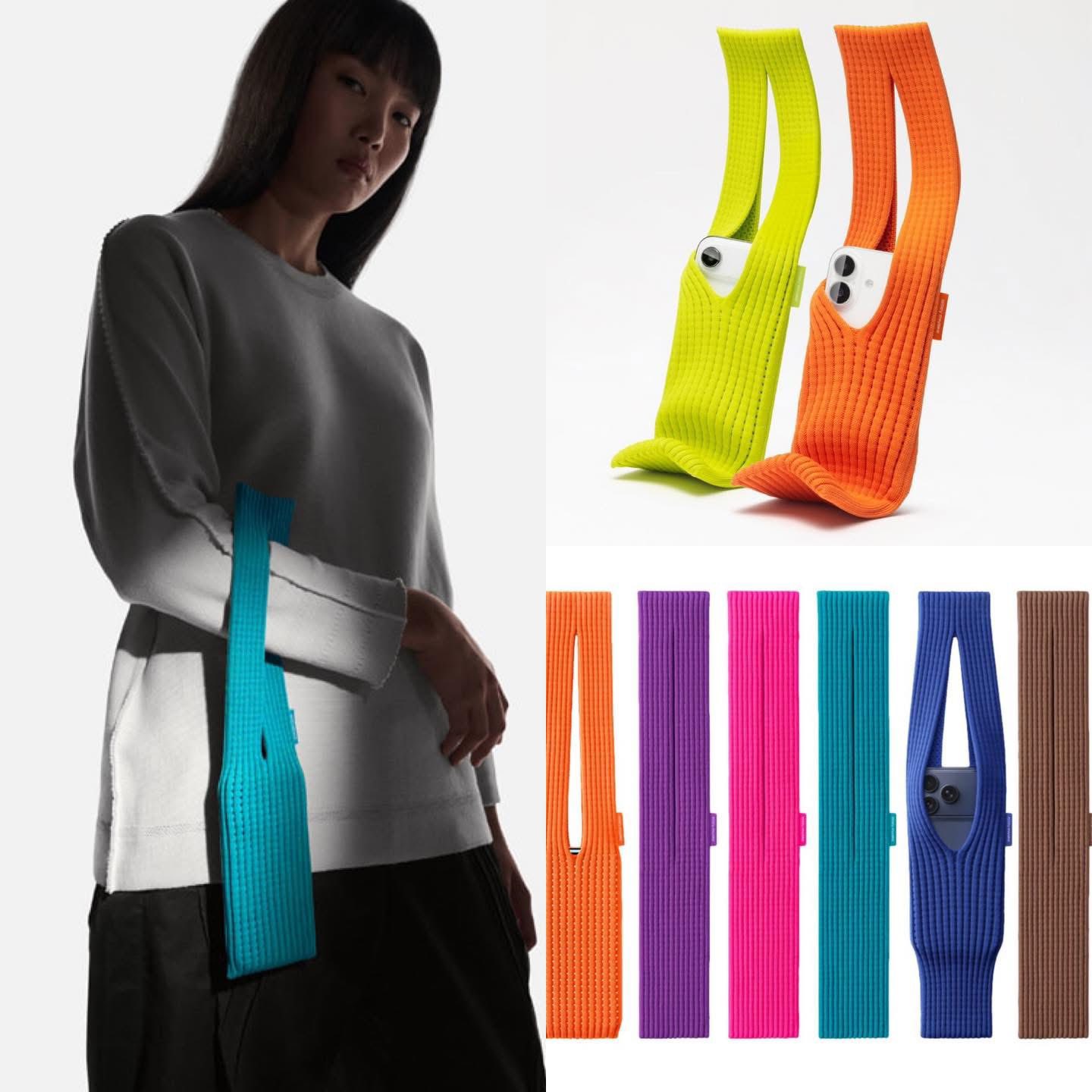 Crafted with 3D Knit technology, the bag is woven seamlessly from a single piece of fabric. It stretches to fit all iPhone sizes and offers space for small essentials like AirPods or bank cards.