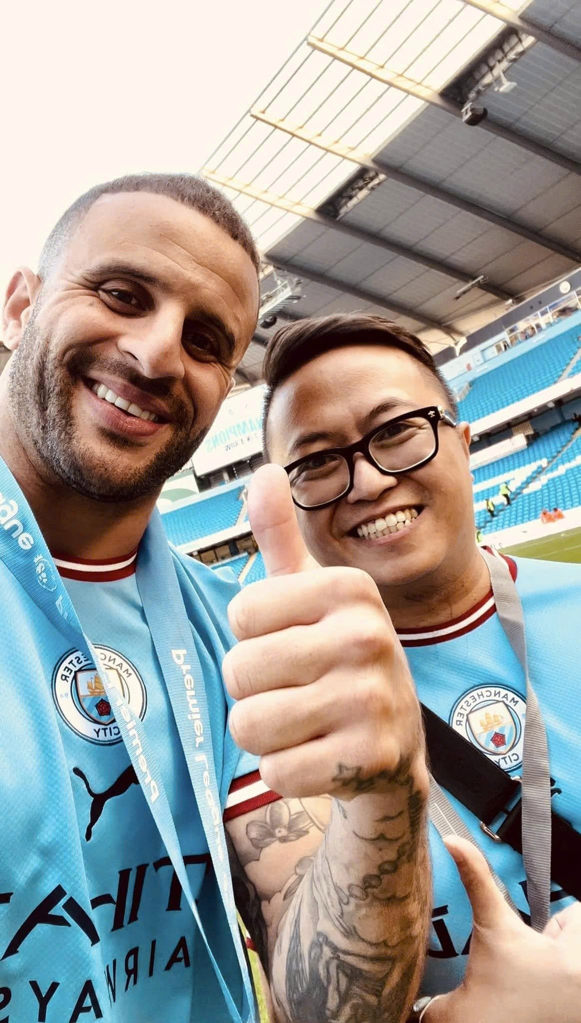 Businessman Quoc Cuong meets Kyle Walker at Manchester City Stadium. Photo: Businessman Quoc Cuong