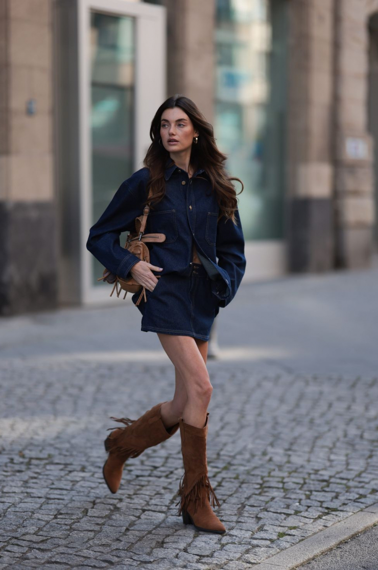 Suede boots are synonymous with autumn elegance. Picture this: a hoodie layered under a long suede jacket, styled with a leather bag and deep brown suede boots — a look that once ruled the streets of New York and is now embraced globally.